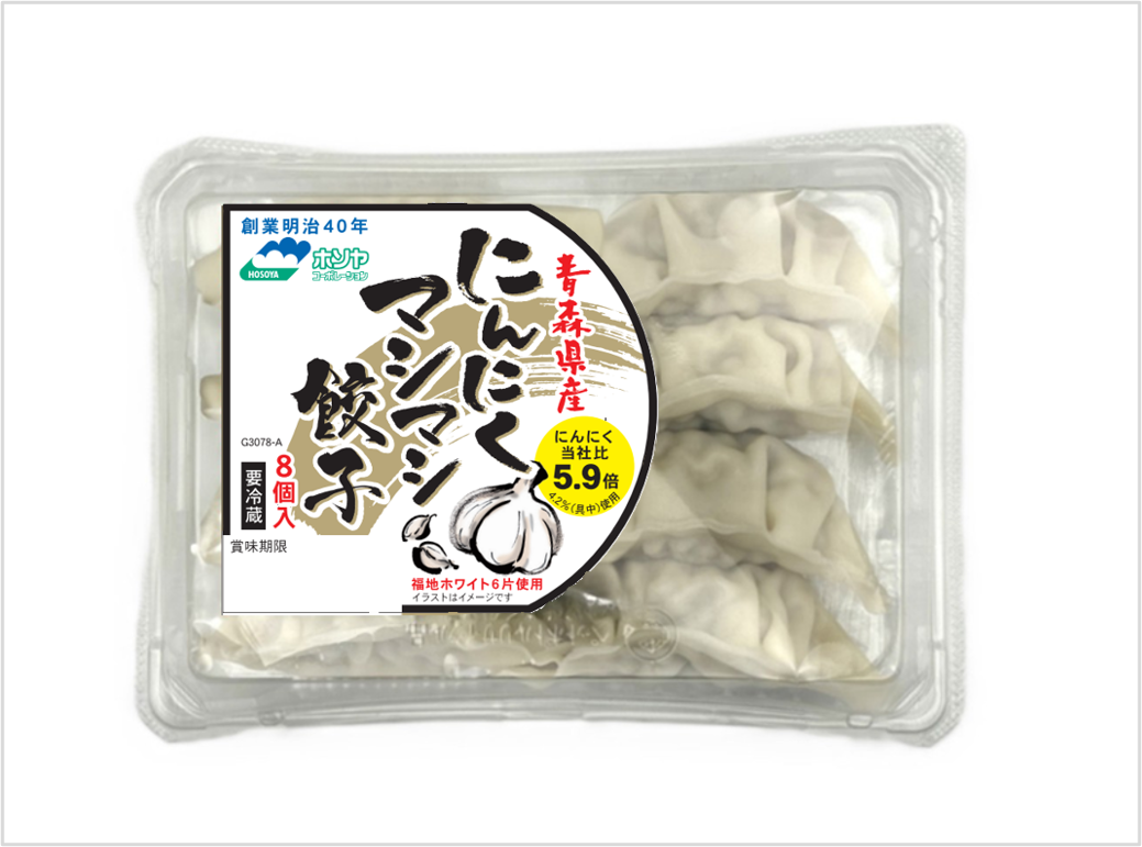 青森県産の福知ホワイト六片を使用。にんにくの量は「贅沢餃子」の5.9倍で、